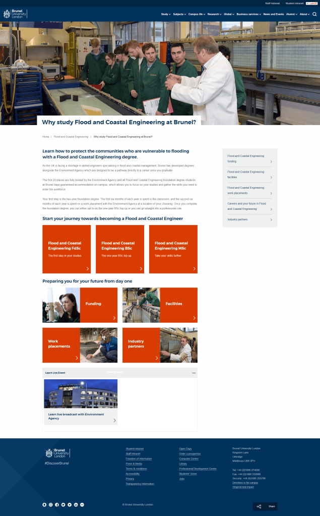 I completed the improvement of the Brunel Flood and Coastal Engineering hub on the Brunel University London website during my time creating and managing the full-scale digital transformation project.