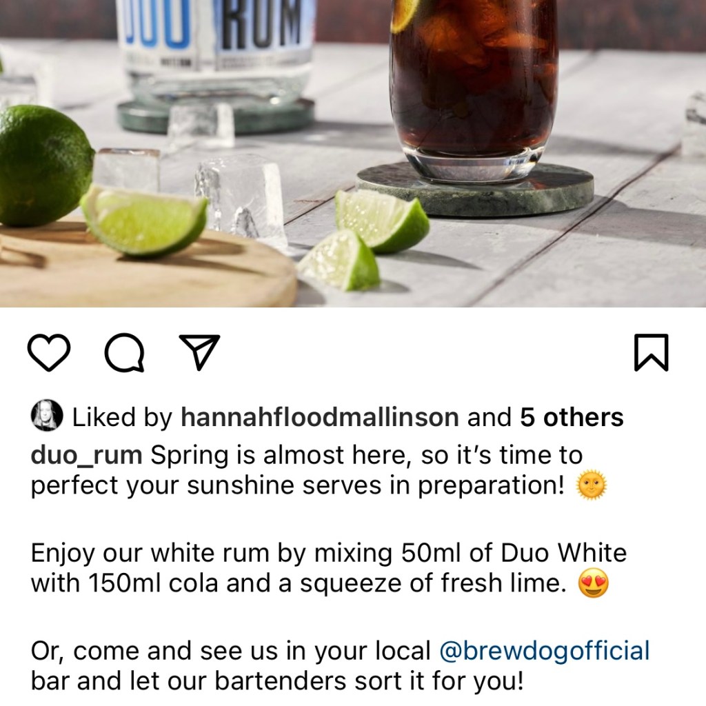 I provided social media caption copywriting for BrewDog Distilling Co. and their five brands.